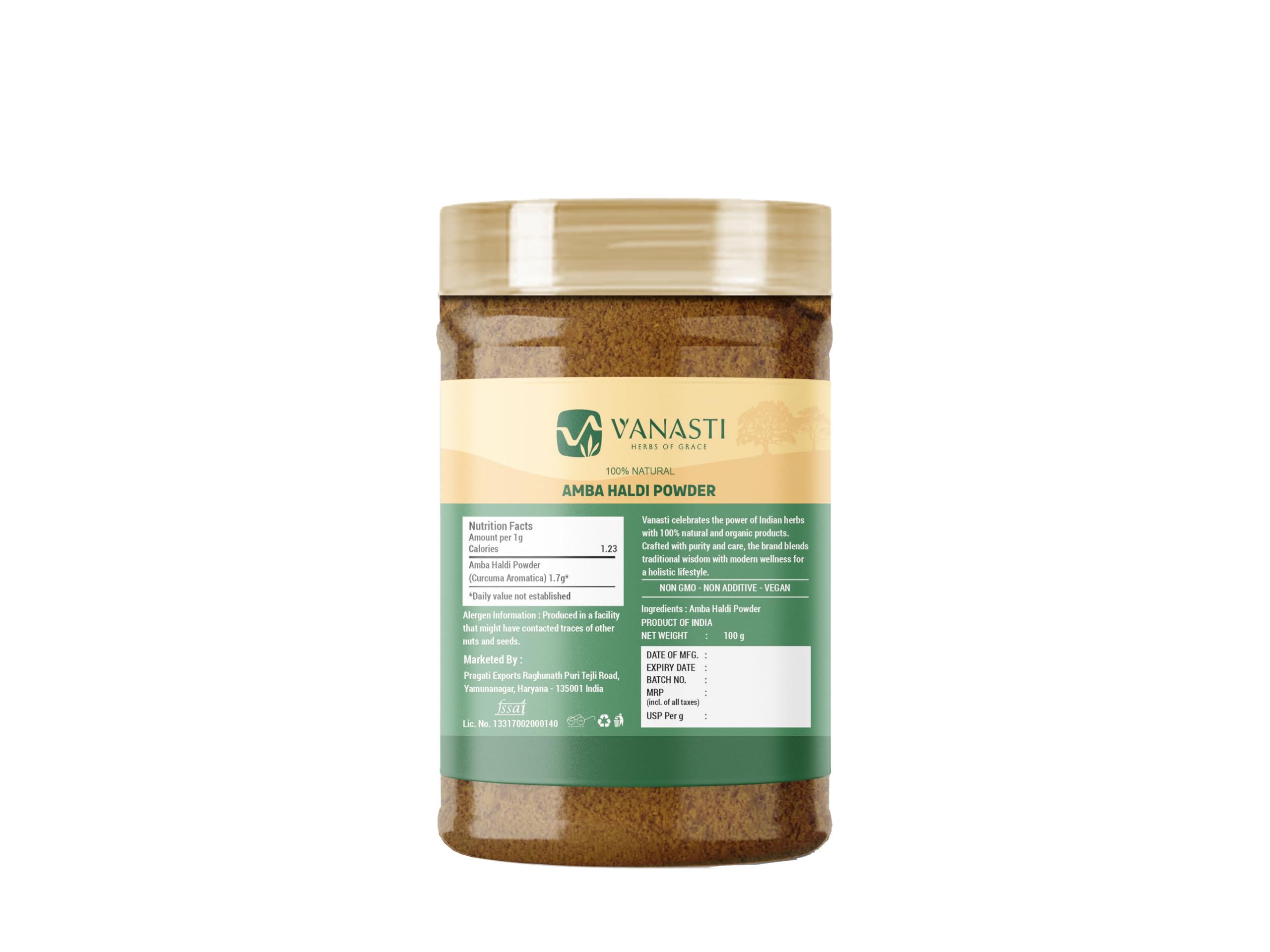 Vanasti Amba Haldi Powder | Jangli Haldi | Curcuma Aromatica | Wild Turmeric Powder | 100 gram
