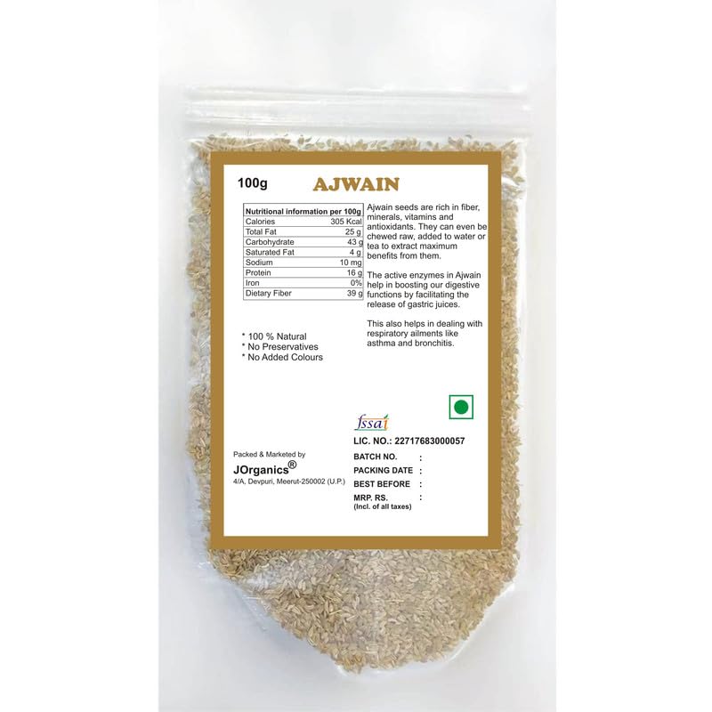 JOrganics Carom Seeds | 100 g | Ajwain Seeds | Omam | Vamu | Ajowan | Ayamodakam Seeds Rich In Antioxidants