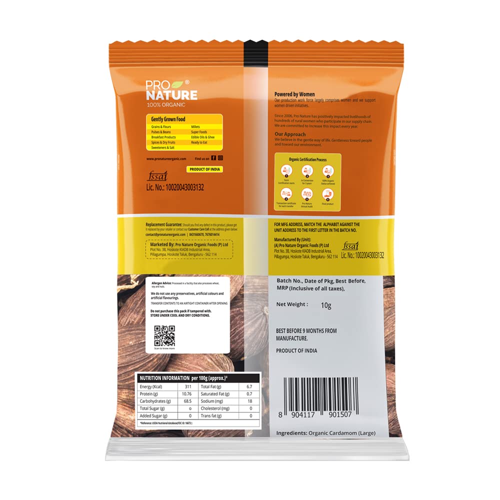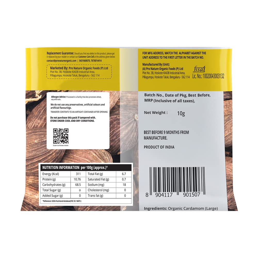 Pro Nature 100% Organic Cardamom (Large) 10G - Powder Gram