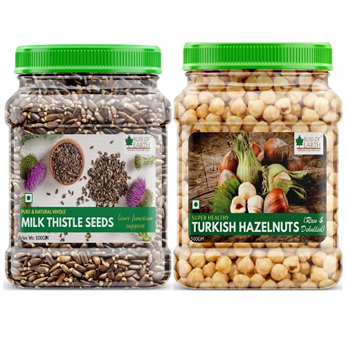 Bliss of Earth Combo Of Healthy & Tasty Turkish Hazelnuts And Milk Thistle Seeds Super Food For Liver Cleansing Immunity Boosting And Blood Sugar Control (Pack Of 2x500gm)