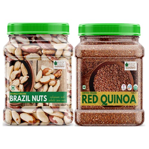 Bliss of Earth Brazil Nuts are nutritional powerhouse providing healthy fats vitamins and minerals. They are particularly high in selenium a mineral with potent antioxidant properties. Hazelnuts can be consumed as a raw snack roasted or added to baked dishes such as cake chocolates & shakes. All in all brazil nuts are an excellent and delicious source of nutrients for a healthy diet. Direction for use: Consume raw roasted or salted. Add to your cake chocolates or shakes. Bliss of Earth Certified Organic Red Quinoa is one of the most popular healthfood. Its high in protein fiber magnesium B vitamins iron potassium calcium phosphorus vitamin E and various beneficial antioxidants. Its also one of the few plant foods that contain sufficient amount of all nine essential amino acids.