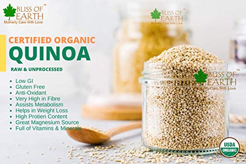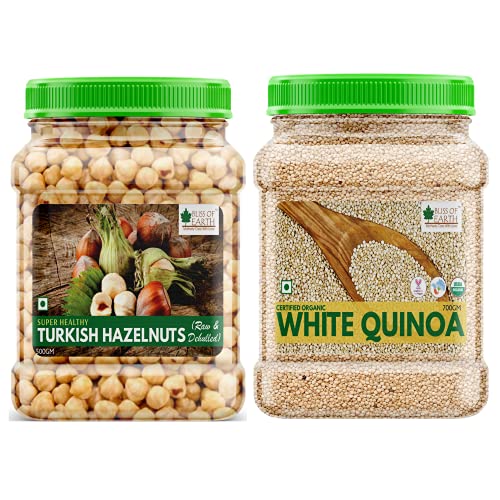 Bliss of Earth Turkish Hazelnuts are powder packed with nutrients including vitamins minerals anti-oxidants and healthy fats. Hazelnuts can be consumed as a raw snack roasted or added to baked dishes such as cake chocolates & shakes. All in all hazelnuts are an excellent and delicious source of nutrients for a healthy diet. Hazelnuts offers various health benefits including regulating blood pressure Direction for use: Consume raw roasted or salted. Add to your cake chocolates or shakes. Ingredients: Raw Dehulled Hazelnuts Country of Origin: Turkey Bliss of Earth Certified Organic White Quinoa is one of the most popular healthfood. Its high in protein fiber magnesium B vitamins iron potassium calcium phosphorus vitamin E and various beneficial antioxidants. Its also one of the few plant foods that contain sufficient amount of all nine essential amino acids.