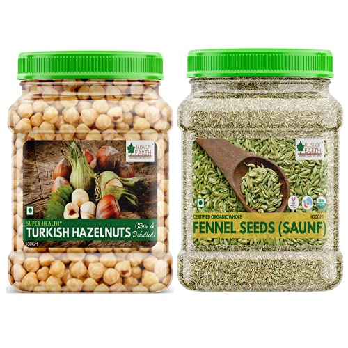 Bliss of Earth Turkish Hazelnuts are powder packed with nutrients including vitamins minerals anti-oxidants and healthy fats. Hazelnuts can be consumed as a raw snack roasted or added to baked dishes such as cake chocolates & shakes. All in all hazelnuts are an excellent and delicious source of nutrients for a healthy diet. Hazelnuts offers various health benefits including regulating blood pressure Direction for use: Consume raw roasted or salted. Add to your cake chocolates or shakes. Ingredients: Raw Dehulled Hazelnuts Country of Origin: Turkey Bliss of Earth Certified Organic Fennel Seeds popularly known as Saunf is one of the main culinary herb and is traditionally known to provide antioxidant anti-inflammatory and antibacterial effects.