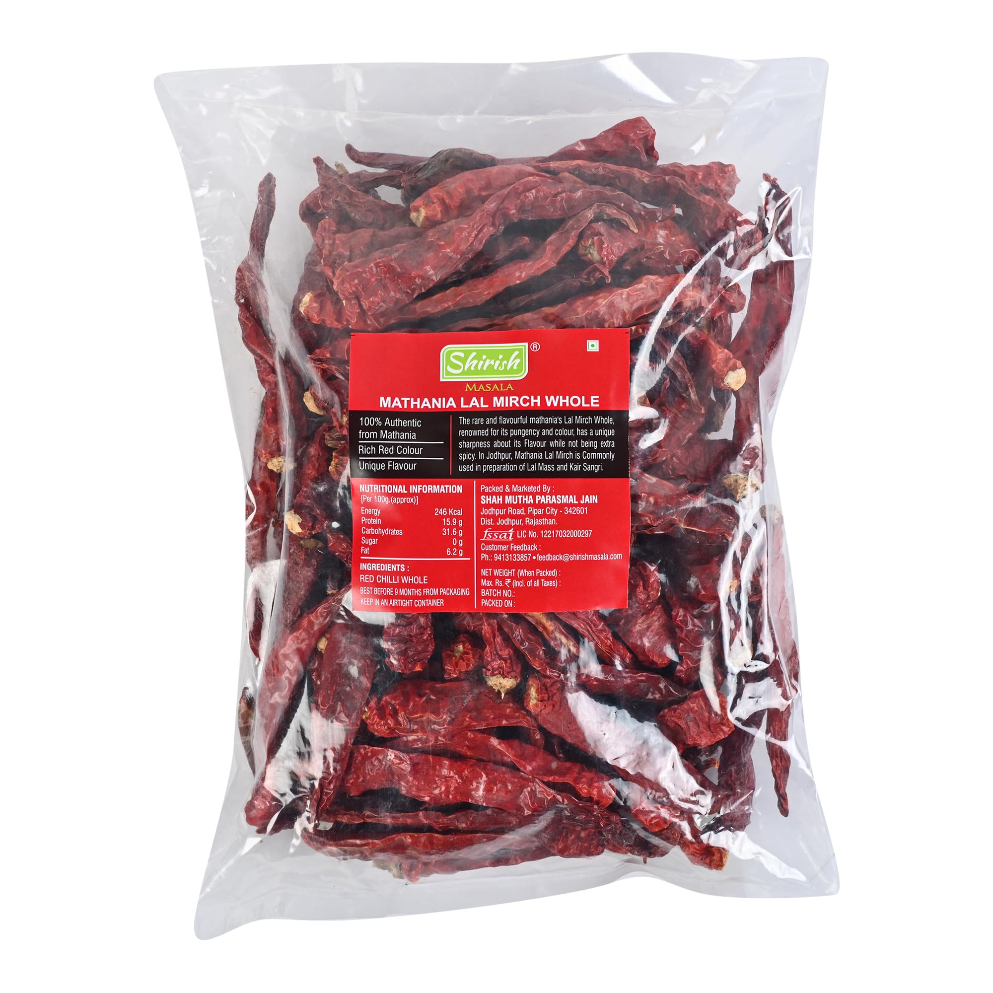 Shirish Masala Whole Mathania Red Chilli (Lal Mirch)(Stemless) 1 KgSortex Clean 70 Years Of Trust