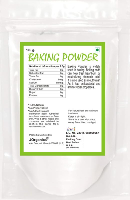 JOrganics Baking Powder | 100% Aluminium-Free | Double-Acting Leavening Agent Baking Powder 100 Gm