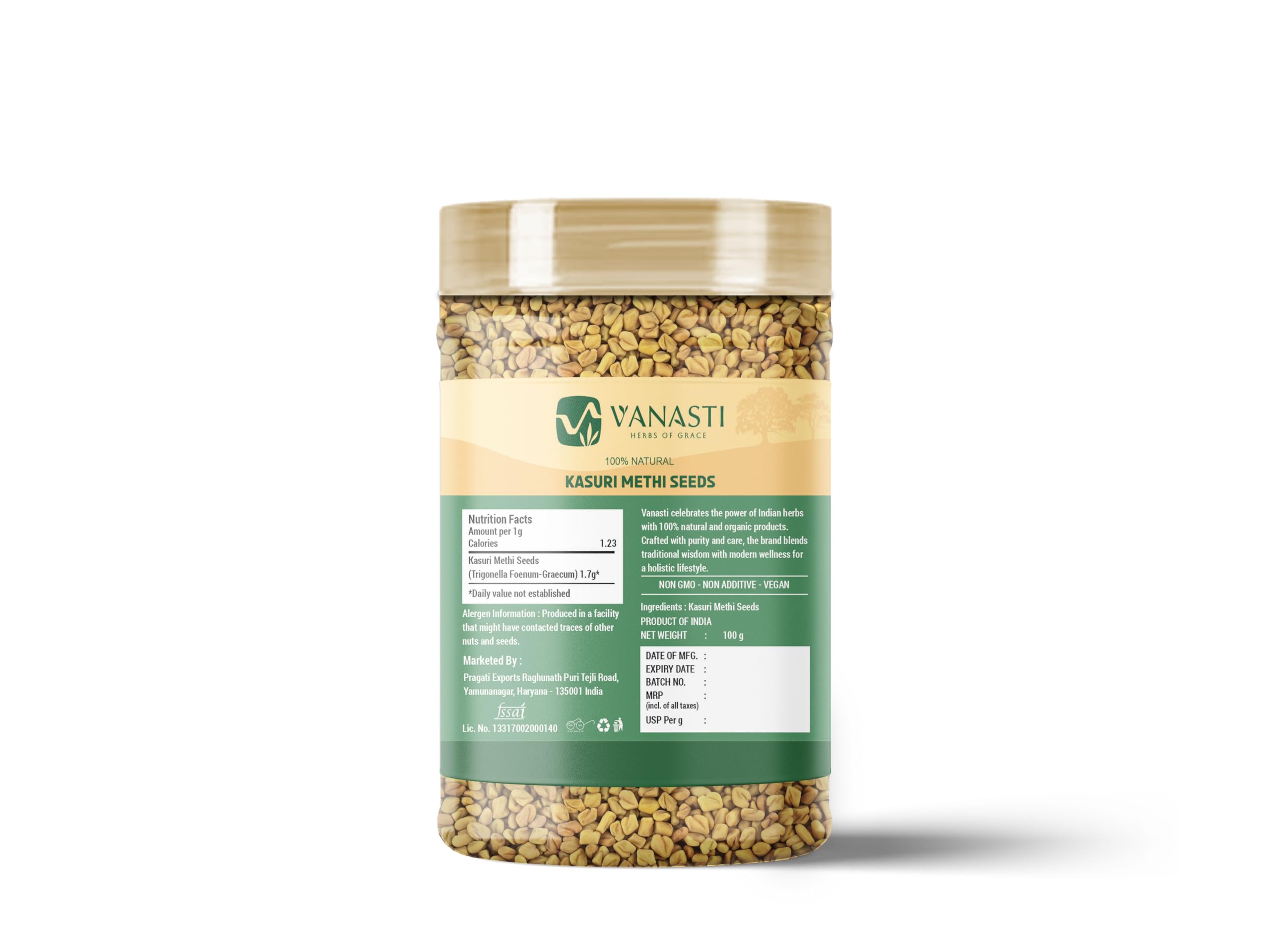 Kasuri Methi Seeds (Champa Methi, Fenugreek Seeds) are small, golden-brown seeds with a slightly bitter, nutty taste. They are naturally rich in protein, fiber, and iron, and also provide calcium, potassium, magnesium, and B vitamins. These seeds are often used to enhance the flavor and nutrition of various dishes