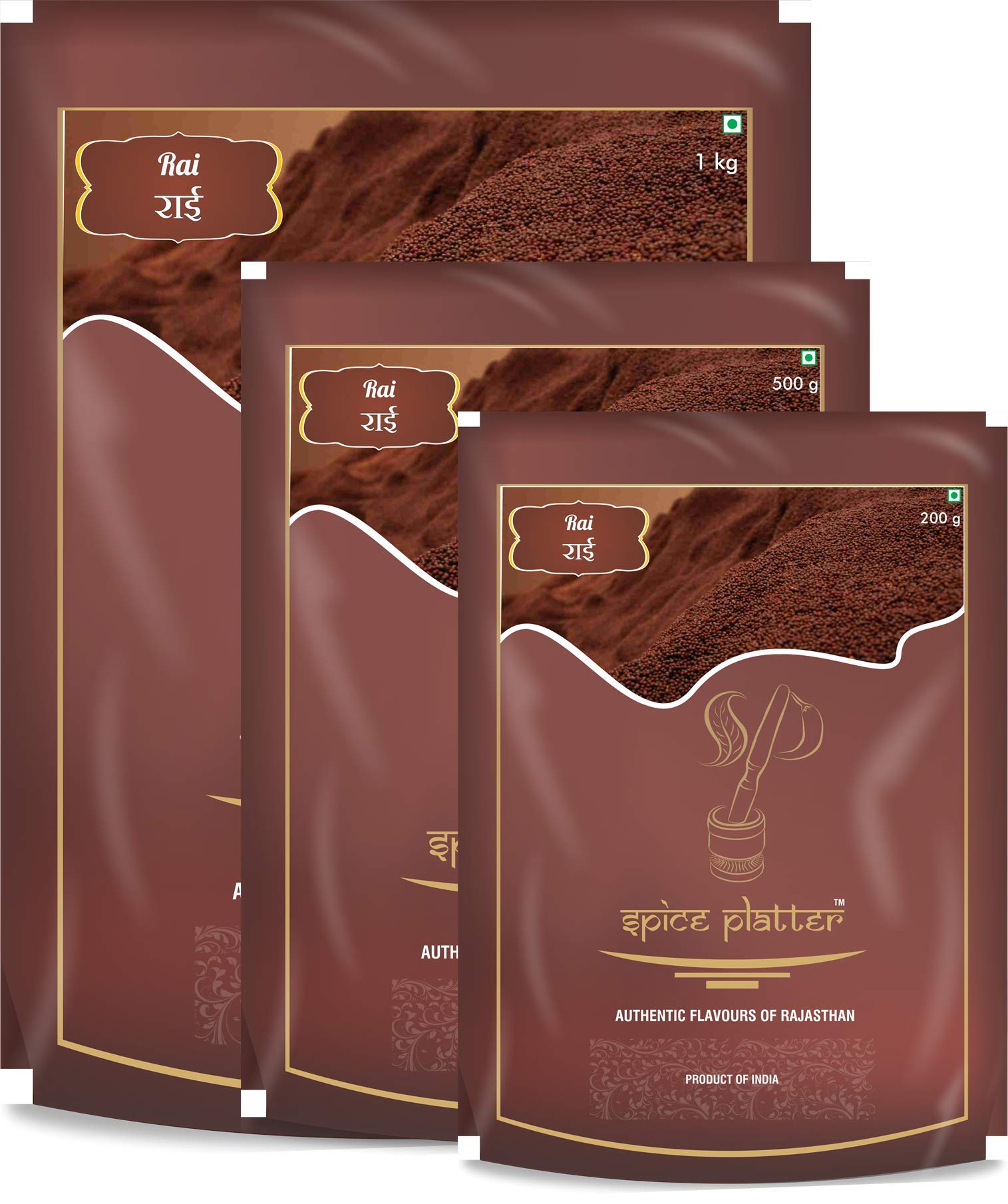 Spice Platter mustard seeds are commonly known as "sarson" Or "rai" In India. They are small rounded seeds about 1 or 2 mm in diameter and are of brown in colour mustard seeds can be of three different colours black mustard brown Indian mustard and white mustard depending upon the type of plant it comes from. Mustard seeds have a sharp pungent flavour. Mustard seeds are used as spices and condiments in various cuisines in India Mediterranean caribbean northern Europe north America and Africa. In India rai seeds are used for seasoning in almost all Indian vegetable dishes; either curry or dry masala recipes. Mustard seeds are also the main ingredients of almost all pickles. Mustard seeds are also used as an ingredient in salad dressings glazes sauces soups and marinades as a cream paste or a whole seed. Whole ground cracked or bruises rai are mixed with water vinegar or other liquids and sometimes other flavourings and spices to create a thick paste commonly paired with meats and cheeses. Get a pack of these authentic mustard seeds Now!.