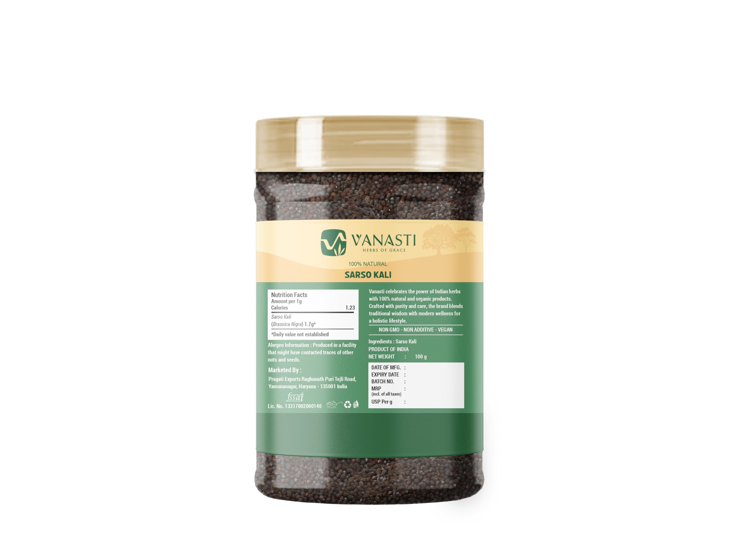 Sarso Kali (Black Mustard, Rhamphospermum nigrum, formerly Brassica nigra) is an annual plant native to cooler regions of North Africa, temperate Europe, and parts of Asia, including India. The plant is cultivated for its dark-brown-to-black seeds, which are commonly used as a spice in cooking and as an ingredient in various cuisines. Black mustard seeds contain plant-based compounds such as sinigrin, which contributes to their characteristic pungent flavor. In Indian culture, mustard seeds are also valued for their use in rituals and as a traditional spice.