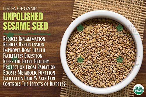 Bliss of Earth Organic Unpolished Sesame seeds are an excellent source of copper calcium omega fatty acids iron magnesium phosphorus zinc and selenium. Sesame Seeds are also a good source of fiber with a rich nutty flavour. Called the queen of oil seeds these tiny seeds are a go-to topping on breadsticks and burger buns. Ingredients: Organic Sesame Seeds
