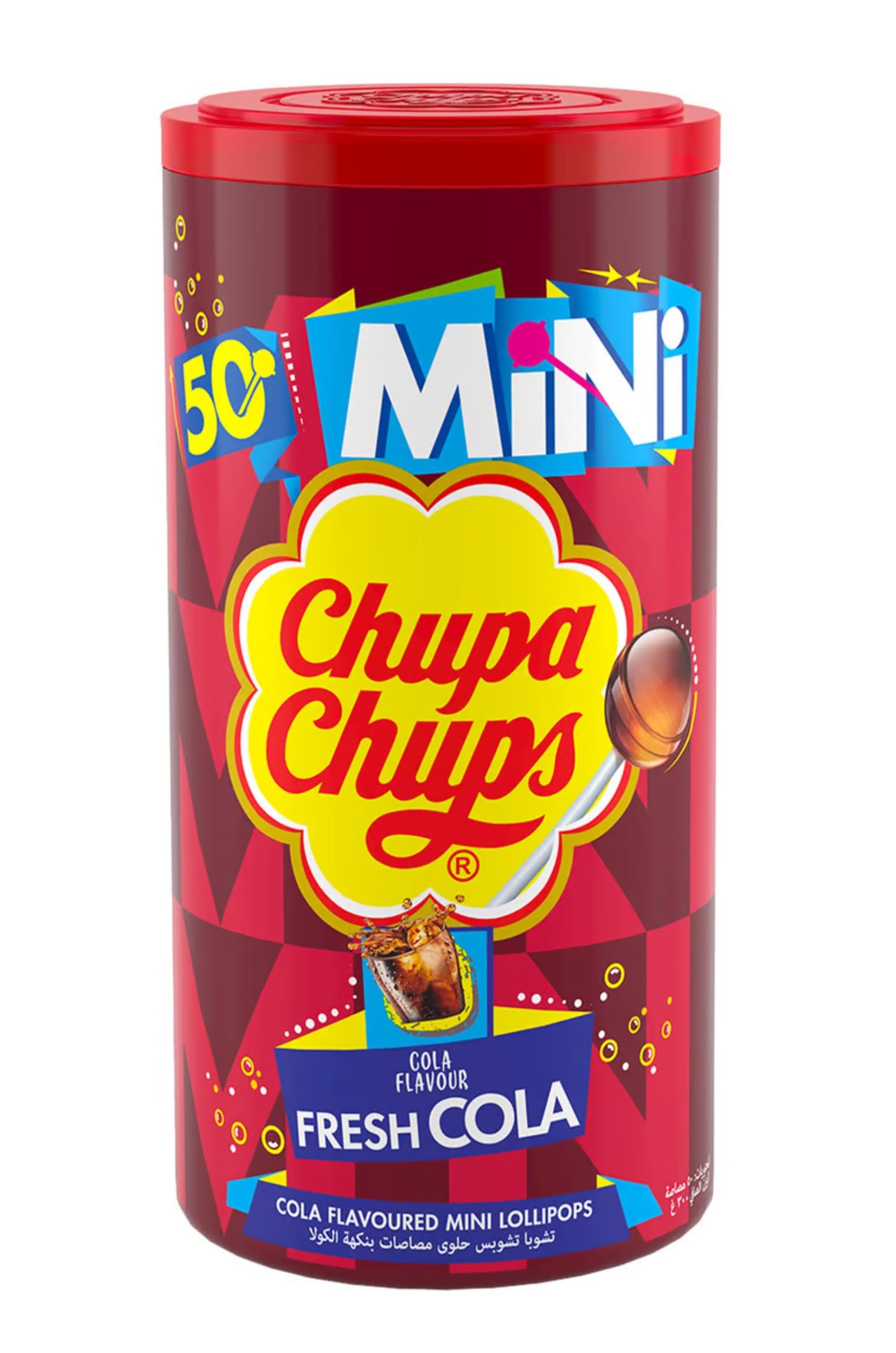 Chupa Chup Minis Fresh Cola Mini Lollipops imported directly to satisfy your craving for a burst of cola flavor. Each jar contains 50 units of these irresistible mini lollipops making it perfect for sharing with friends family or keeping all to yourself.