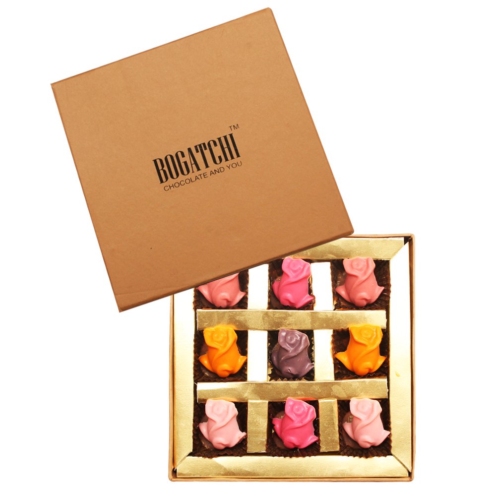 Bogatchi birthday special colourful rose chocolate. Luxurious delicious dark chocolates real treat for true chocolate birthdays. Bogatchi chocolates are made up of fine quality cocoa power and rich cocoa butter. Perfect gift for him gift for her gifts for girls gift for boys