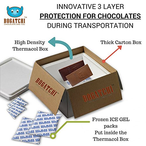 • Bogatchi Chocolates are shipped in Thermacol Insulated Box with ICE PACKS inside to maintain ambient temperature during transit to ensure BEST CHOCOLATY EXPERIENCE for its customers. Bogatchi Chocolates are FSSAI certified and Lab tested for its PREMIUM Q