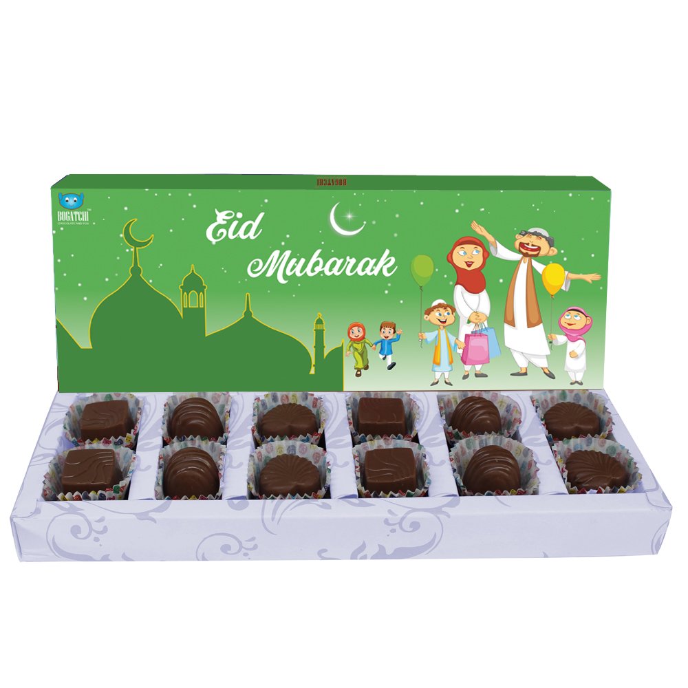 Bogatchi eid Mubarak assorted chocolates. Luxurious delicious dark chocolates real treat for true chocolate lovers. Bogatchi chocolates are made up of fine quality cocoa power and rich cocoa butter. The exotic flavours of chocolate are sure to tickle your taste buds. These chocolates are perfect for the any age group who are young at heart. These chocolates are just the right gift for any season. This is an amazing gift to send to your girlfriend boyfriend brother sister or parents. Send these gifts to your near ones and surprise them.