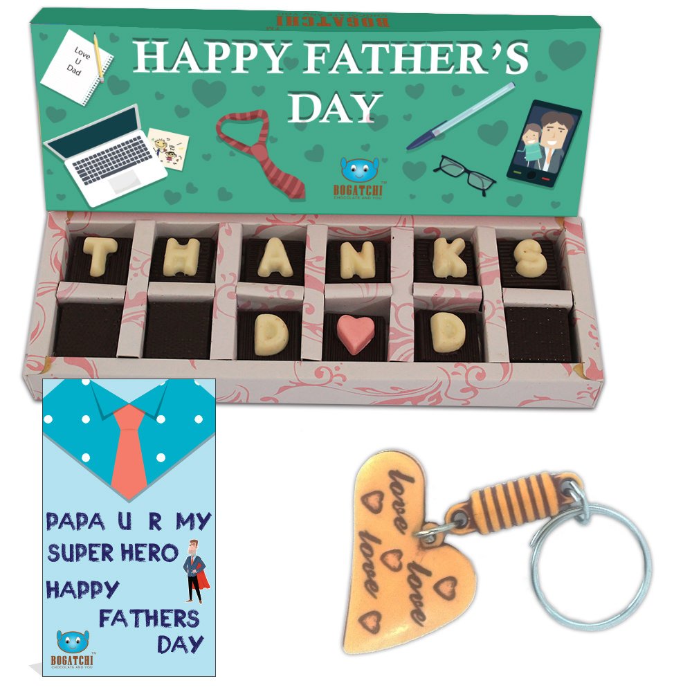 BOGATCHI Happy Father's Day Theme Gift Box Special Fathers Day Gift Thanks DAD Chocolate Box 12 pcs + Free - Fathers Day Greeting Card + Love Key Chain