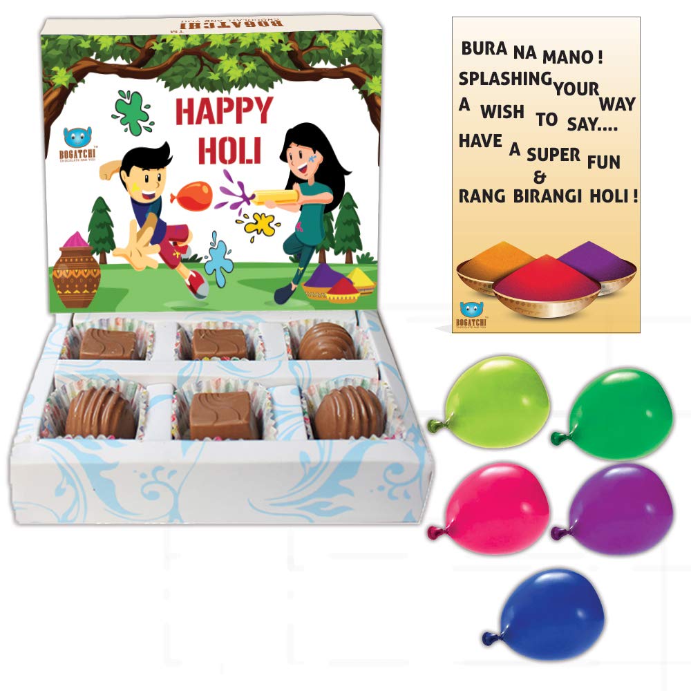 BOGATCHI Happy Holi Chocolate Gift Box 6 pcs + Free Greeting Card + Free Holi Gifts