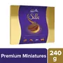 Cadbury Dairy Milk Silk Chocolate Bar 150g (Pack of 3)Cadbury Dairy Milk Silk is all about experiencing in the chocolate's richness and creaminess. The classic taste of Cadbury chocolates offer you a reason to celebrate every small and big occasion of happiness. In short Indulge in the premium chocolate delicacy.Cadbury Silk Dairy Milk - Silk Miniatures Collection 240 gDiscover the gift of Cadbury Silk mignonettes Bitesize bars of dairy milk silk chocolate. Premium Silk Mignonettes offer individually wrapped miniature bars in four unique flavours - Classic Chocolate Sea Salt Butterscotch Almond. This pack contains 24 bites of four flavours. These elegant miniature bites come in a premium pack which makes them a perfect gift pack to share with your friends and family. Silk Mignonettes are packed and delivered with frozen gel packs (reusable) to maintain temperature & quality during transit.