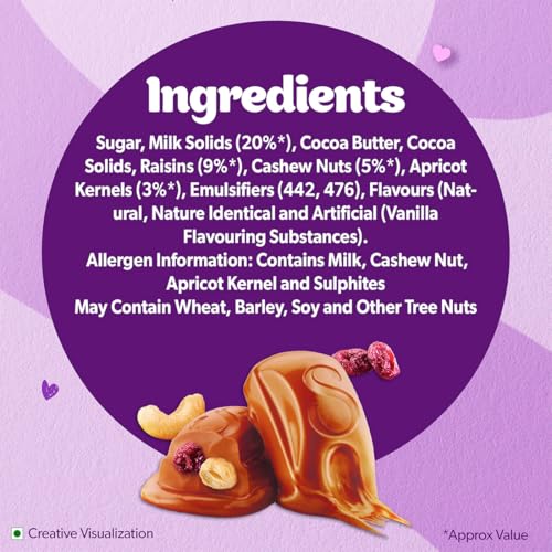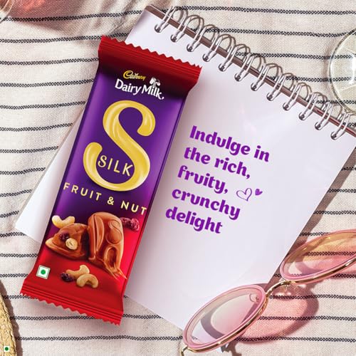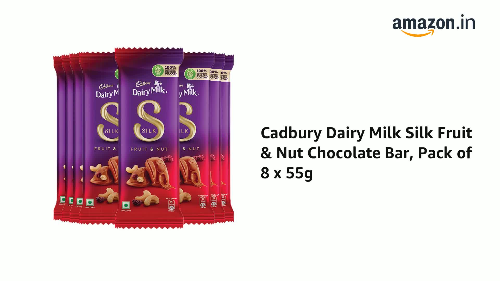 Cadbury Dairy Milk Silk is all about regaling in the richness and creaminess of chocolate. Indulge in a rich smooth and creamy celebration. Silk: The classic taste of Cadbury Dairy Milk chocolates only more creamy more smooth more indulging. Cadbury Dairy Milk Silk Fruit and Nut is made with a glass and a half of milk and offers a delicious combination of combination of creamy milk chocolate and almonds & raisins. This milk chocolate bar is a perfect sweet to indulge in all alone or as a chocolate gift pack for gifting on special occasions like birthdays and get-togethers. Every bar of Cadbury Dairy Milk Silk is made from 100% sustainably sourced cocoa. It is suitable for vegetarians.