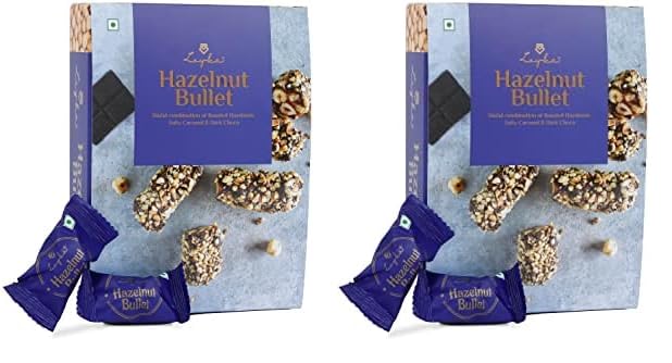 Crunchy texture : Hazelnut Bullet features a caramel candy core that is covered with a generous coating of dark choco and crunchy hazelnuts for a heavenly taste and texture.