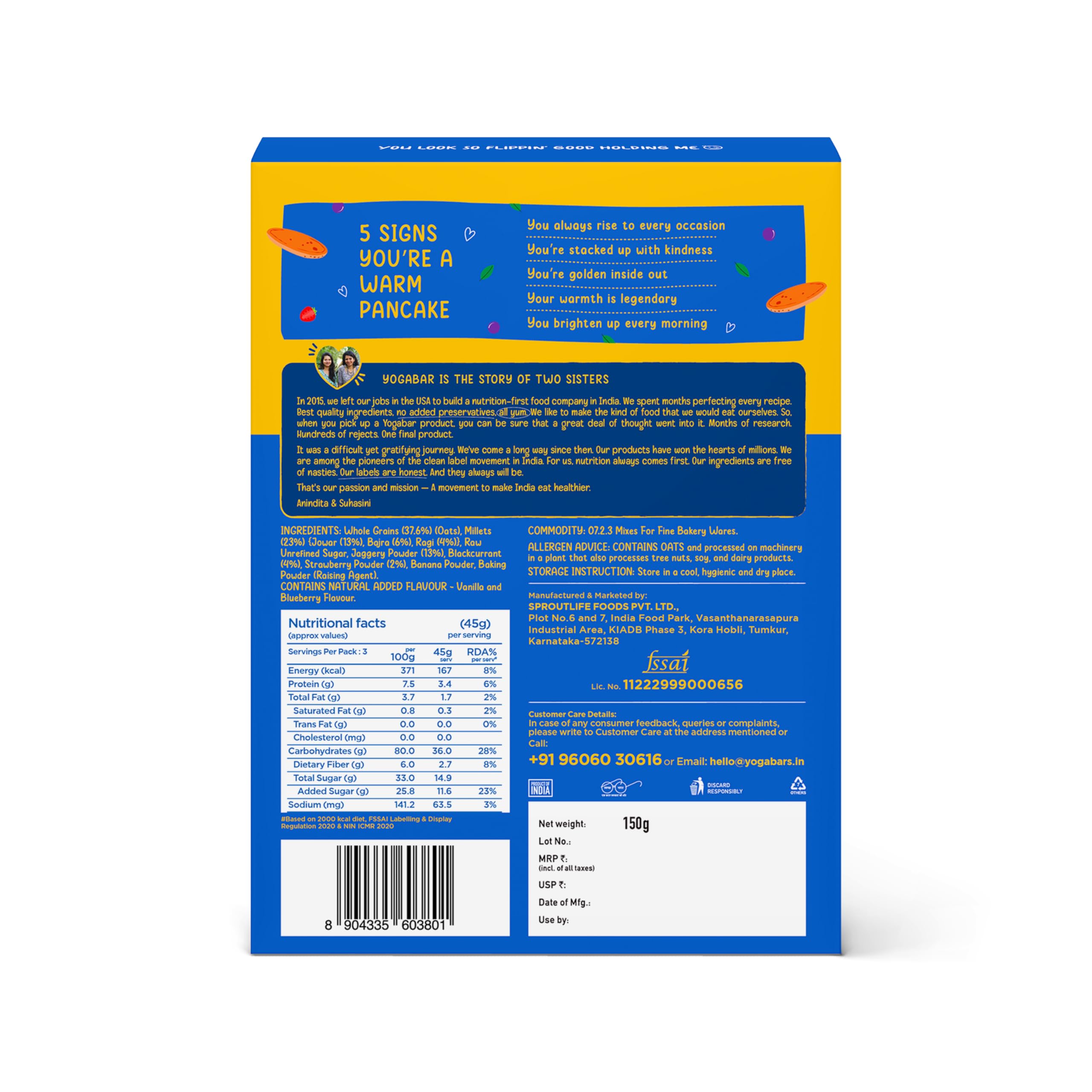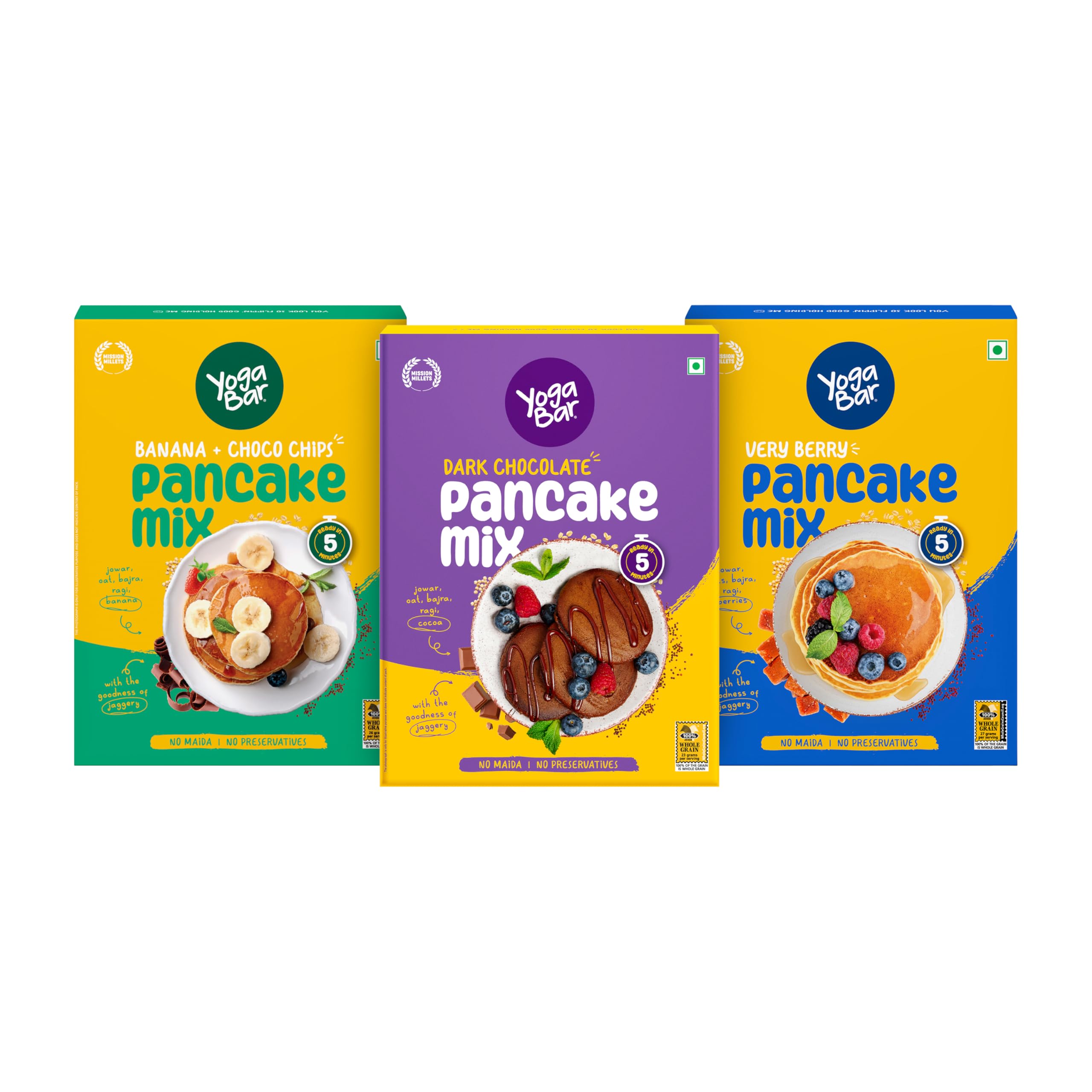 Yogabar Pancake Mix Chocolate Very Berry & Banana Choco Chip Pan Cake Mix Powder0 Maida0 Preservatives Goodness Of JowarBajraRagiHealthy Breakfast For Children Easy To Make Breakfast150 Gram X Pack Of 3