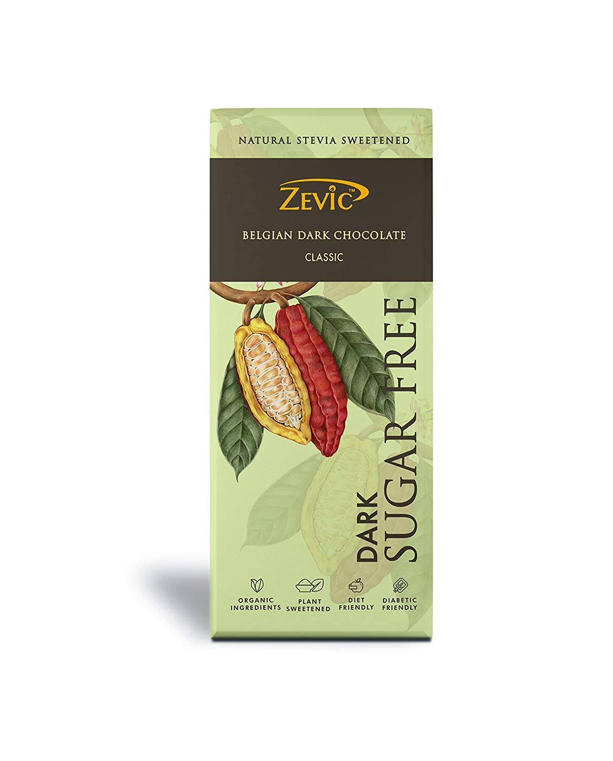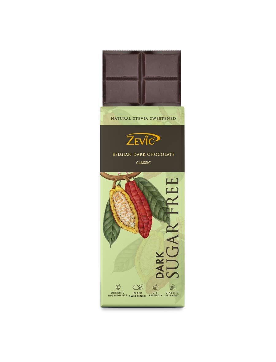 ZEVIC Dark Chocolate Sugar Free | Classic Cocoa Belgian Dark Chocolate Bar | Natural Stevia Chocolate | Diabetic Friendly Chocolate | Diet Keto Chocolate | Vegan Healthy Chocolate 40g (Pack of 1)