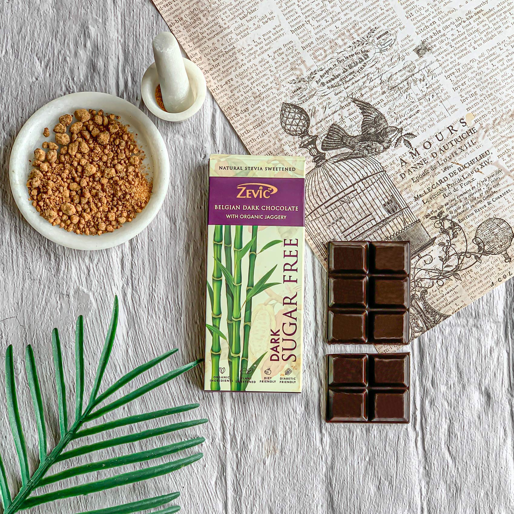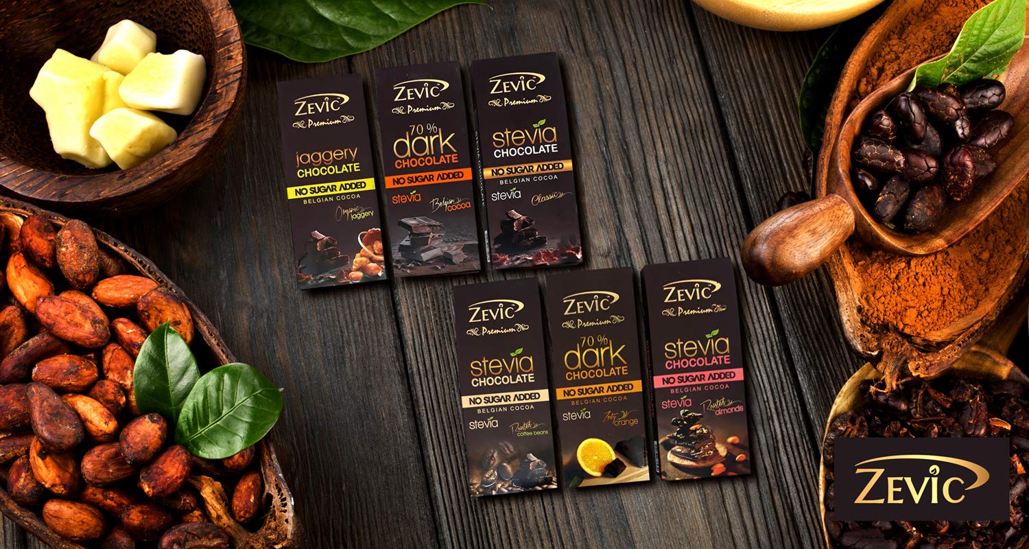 HomeGrocerySweetsChocolatesZEVIC Sugar Free Dark Chocolate with Organic Jaggery | Belgian Dark Chocolate Bar | Sweetened with Jaggery | Rich in Nutrients | Vegan Healthy Chocolate 40g - (Pack of 1)