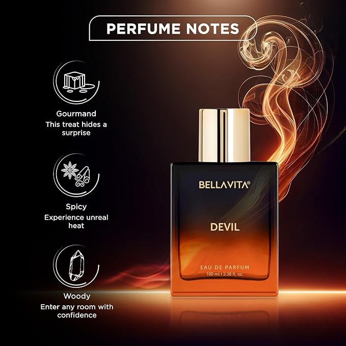 BELLAVITA Devil EDP 100ml | Long Lasting Perfume for Men and Women | Gourmand, Cedar, Vanilla and Musk | Spicy Fragrance Unisex Perfume