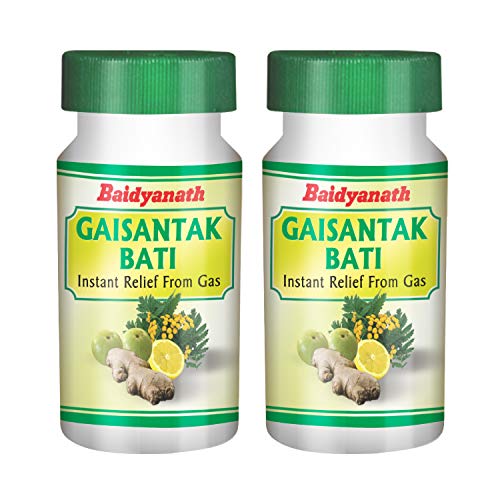 Baidyanath Gaisantak Bati - Instant Relief from Gas and Indigestion - 100 Tablets (Pack of 2)Baidyanath Gaisantak Bati is a traditional Ayurvedic formulation made from commonly known herbs known to provide quick relief from digestive distress like gas hyperacidity flatulence and bloating. It contains household herbs and spices like Ajwain Ginger Hing and Kala Namak that are also known to help elevate your immunity and energy levels. Consume 1 to 2 tabets twice a day post your meals or as directed by the Ayurvedic practioner.Baidyanath Vansaar Oli Oil - Pure olive body oil with 2X more Real Italian Olives including Almonds and Sandalwood 100% more nourishment - 500 mlBaidyanath Oli Oil is an herbal body oil made of pure olive oil enriched with almonds sandalwood and neem for complete skin nourishment. This oil penetrates deep into the skin and creates a moisture shield to keep your skin smooth and silk and supple. Take a generous amount of oil and massage it on your skin either before or after your bath.