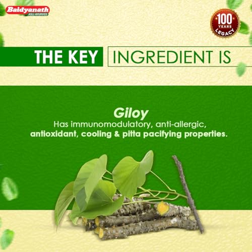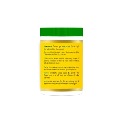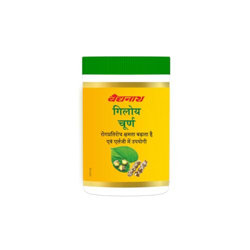 Baidyanath Giloy Churna is beneficial for easing pitta imbalances like the burning sensation of hand and feet allergic reactions skin and acidity. Baidyanath Giloy Churna is solely made up with Giloy also known as Guduchi a popular herb in the ayurvedic world. It has been used in ancient herbal mediciines and is known for its anti-arthritic antipyretic deigestive anti-inflamtory iron ting properties.