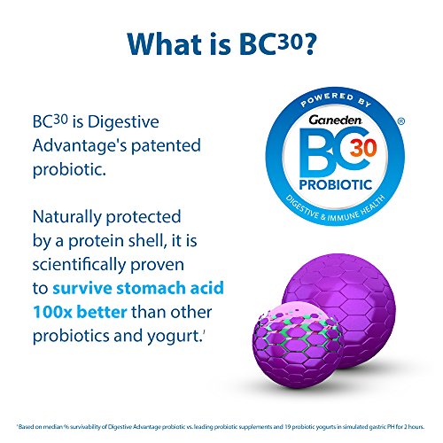 Digestive Advantage Intensive Bowel Support Probiotics supplements support digestive health with BC30 probiotics and digestive enzymes to help re the natural balance of good bacteria within your intestinal tract and defend against occasional digestive upsets such as gas abdominal discomfort bloating and diarrhea.