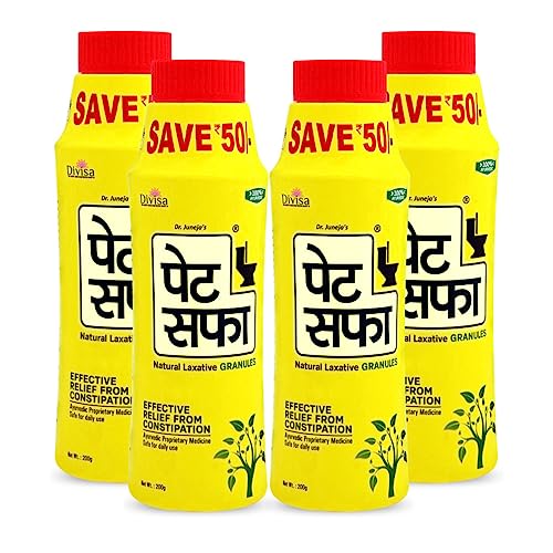 Pet Saffa Natural Laxative Granules 200gm Pack of 4 helpful in constipation gas acidity Dosage: at bed time or as directed by the physician