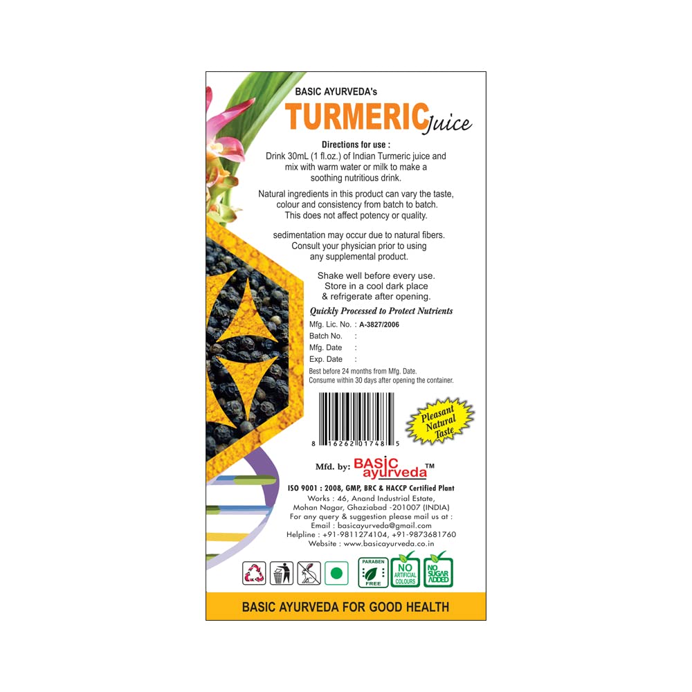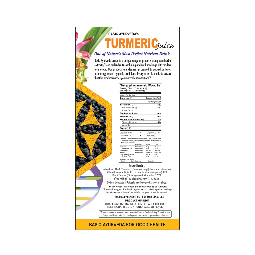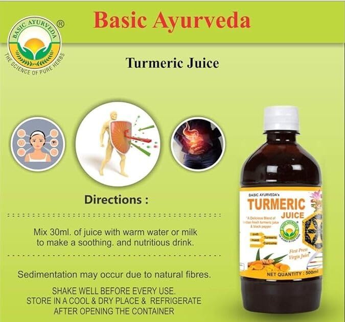 Basic Ayurveda Turmeric Juice is an ayurvedic formulation accurately composed that contains herbal liquid extracts and fruit juice concentrate. It is a rich source of Vitamins Iron Zinc and Magnesium which help maintain blood sugar levels and also keep th