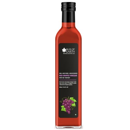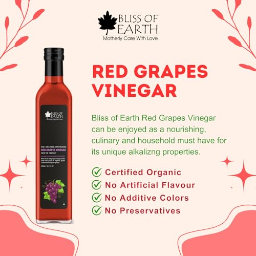 Bliss of Earth Raw Red Wine Vinegar With Mother, Unfiltered Red Grapes Vinegar For Cooking, Salad Dressings and Marinating Fresh or Grilled Vegetables, 500ml