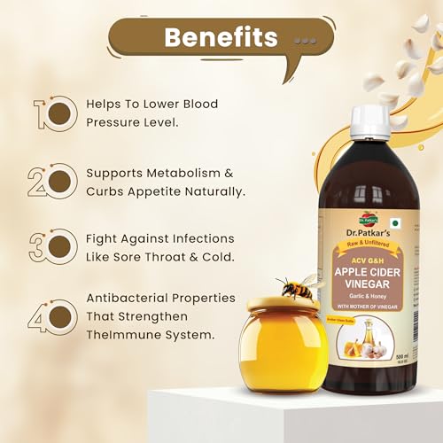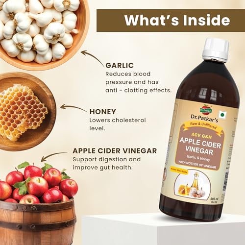 Dr. Patkar's Apple Cider Vinegar with Garlic & Honey 500ml (Pack of 2) | Unfiltered & Undiluted | Suitable for BP management and lowers bad cholesterol, Immunity (With Mother) 1000ML