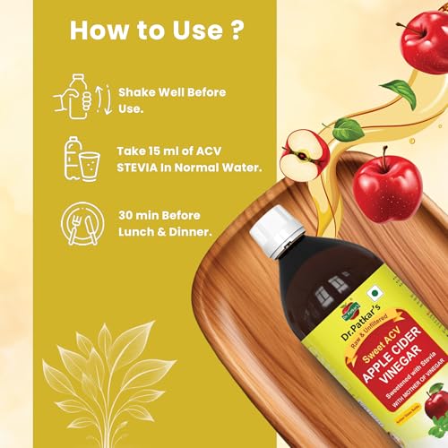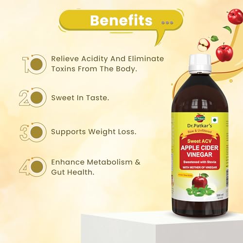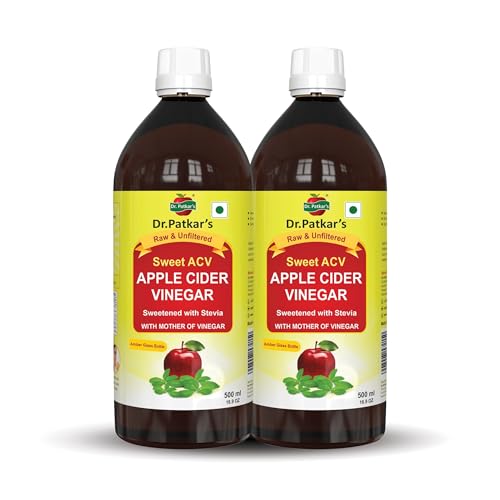 Dr. Patkar's Apple Cider Vinegar with Stevia 500ml | Unfiltered and Undiluted | Suitable for Weight Loss, Immunity (With Mother) Naturally Sweetened (Sugar Free) 500ML (Pack of 2)