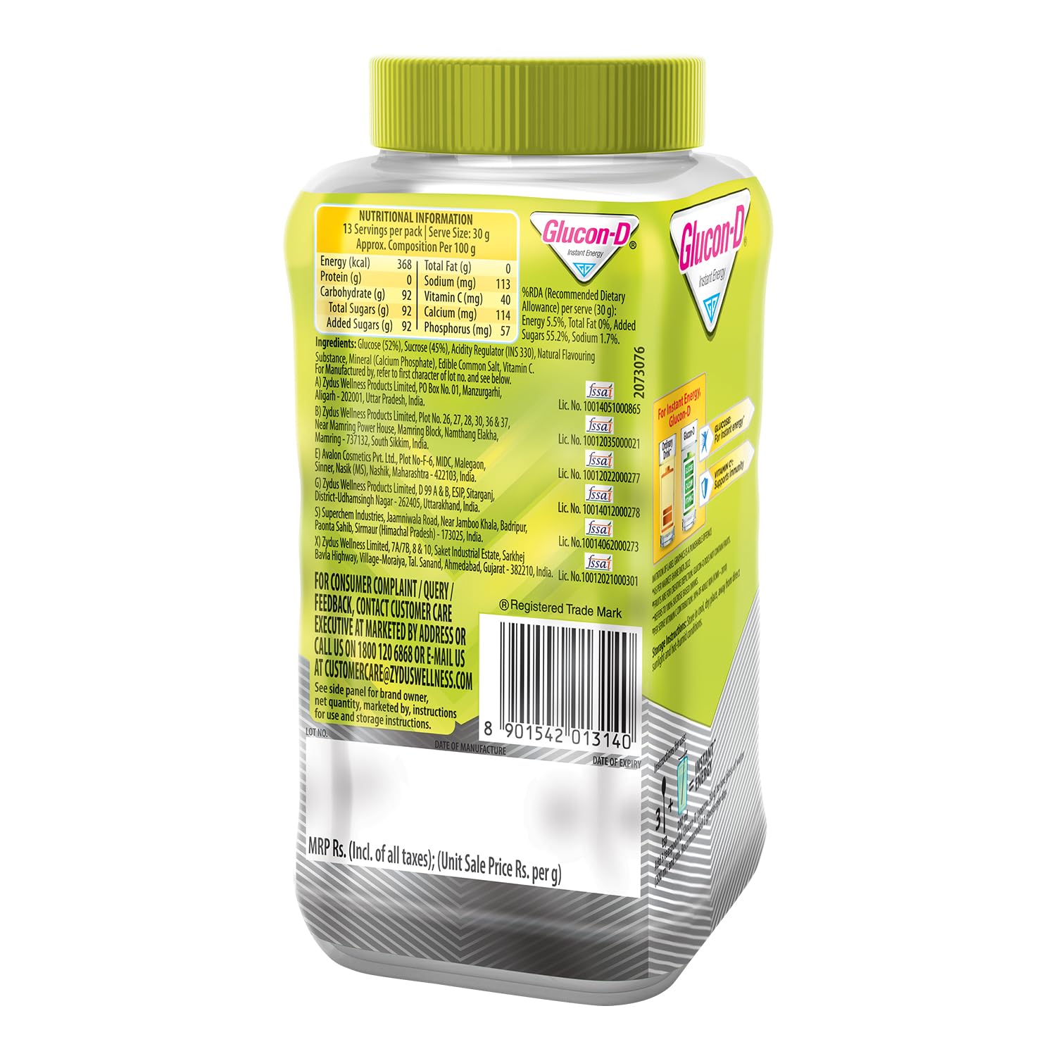 Glucon-D Nimbu Pani Glucose Powder(400G Jar)| For Tasty & Healthy Tangy Flavoured Glucose Drink| Provides Instant Energy| Vitamin C Supports Immunity| Contains Calcium For Bone Health Lime