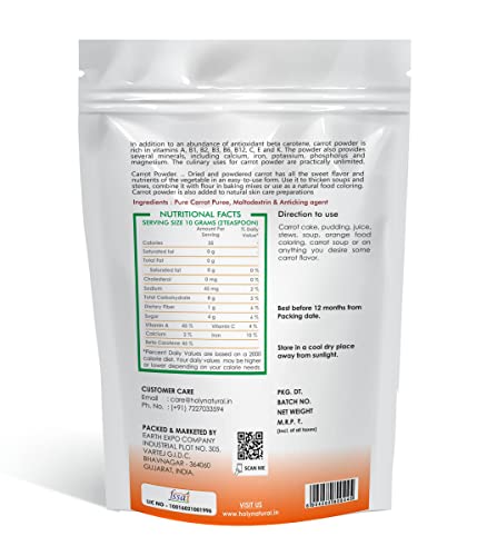 Holy Natural Carrot Powder 100gm, Spray Dried Powder, Rich immune booster, Make for juice, smoothie, soup, Healthy carrot powder for Healthy life.