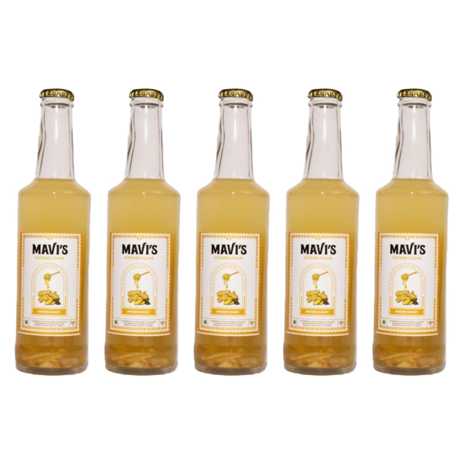 MAVI's Ginger Honey Kombucha| Real Organic Ginger & Raw Wild Honey | Raw & Alive | Gut Friendly | 100% Organic & No Preservatives | No Artificial Flavour or Colour | Fermented Tea 300ml (Pack of 5)