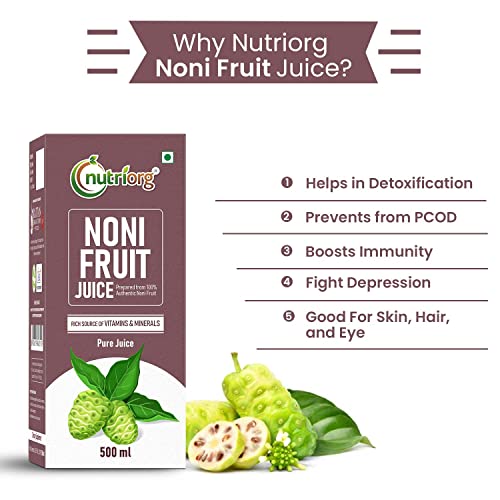 The Nutriorg Noni Juice is made from 97% Noni fruit concentrate and 2.8% Garcinia. Nutriorg's Noni Juice is 100% Pure and unadulterated.