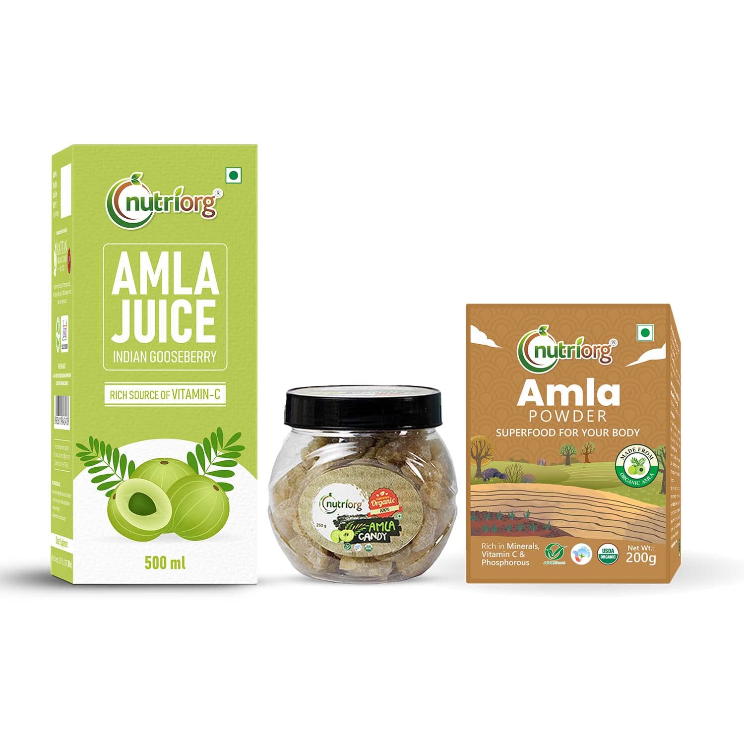 Nutriorg amla juice and certified organic candy and powder is made from organic amla which is grown in company's own certified organic farms located in rajasthan.