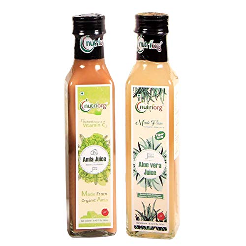 Nutriorg Detox Pack Amla & Aloe vera Juice 500 ml Glass Bottle (Pack of 2 * 250 ml) | Immunity Booster