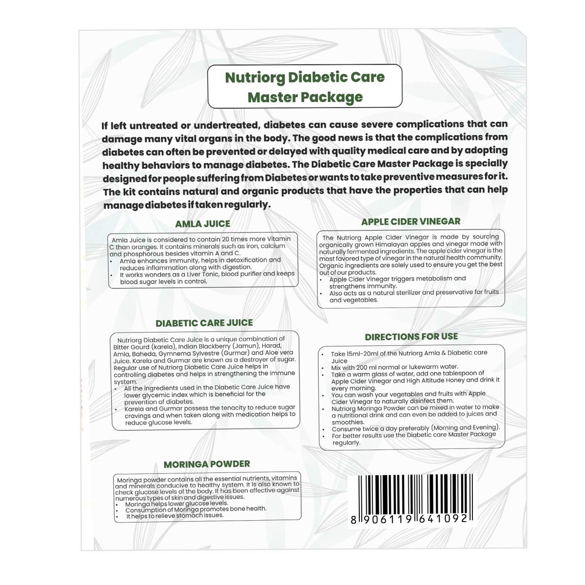 Nutriorg Diabetic Care Master Package (Amla Juice 300 ml Diabetic Care Juice 300 mlApple cider vinegar 100ml Moringa Powder 15g)