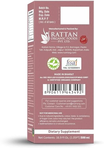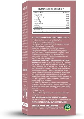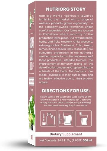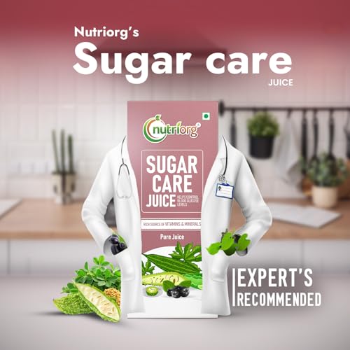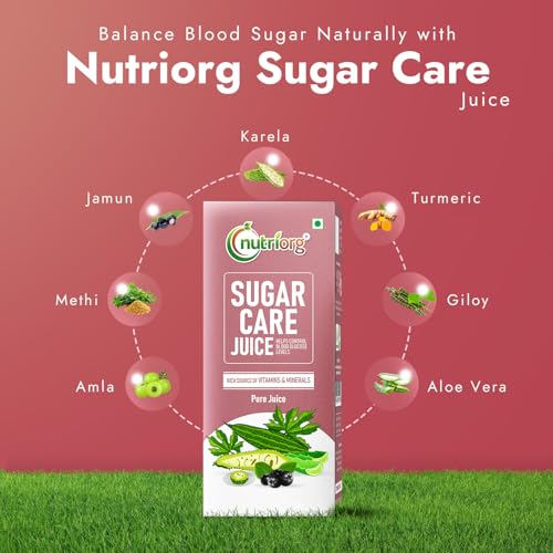 HomeHealth & PersonalDiet & NutritionHealth DrinksNutriorg Sugar Care Juice 500 ml | Ayurvedic Blend for Blood Sugar Control | Made with Karela, Amla, Jamun, Methi, Aloe Vera, Giloy, Neem & Tulsi | Pure & Natural Juice for Diabetic Care