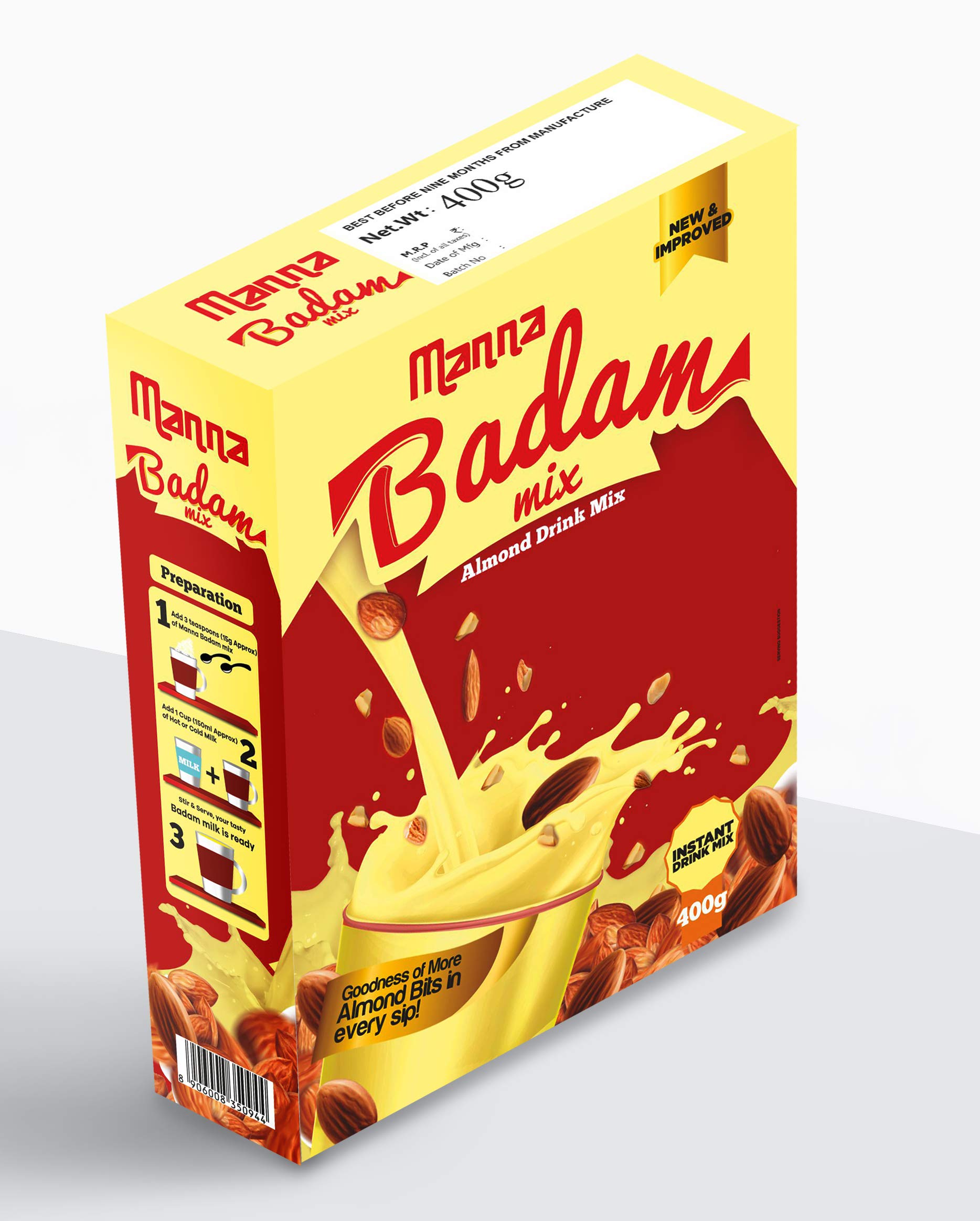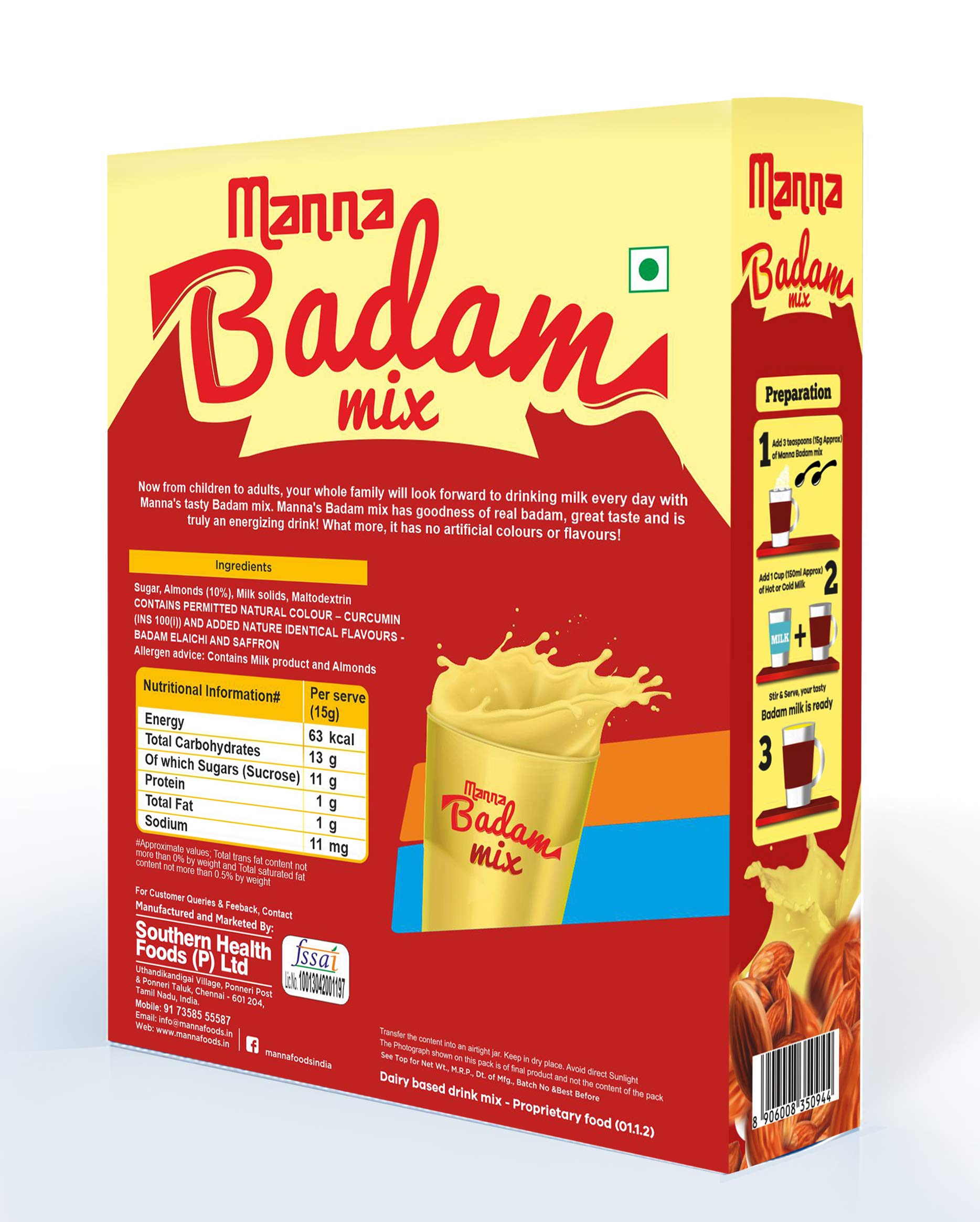 Manna Instant Badam Drink Mix with Real bits of Badam 400g | More Bits per Sip (10% Badam). Make Milk tastier