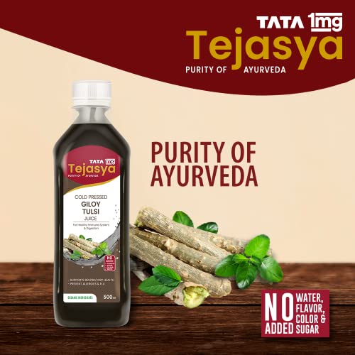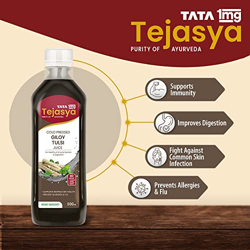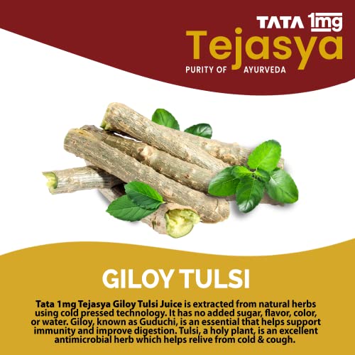 Tata 1mg Tejasya Giloy Tulsi Juice Helps In Immune System And Digestion Flush Out Toxins & Purifies The Blood (Pack of 1)