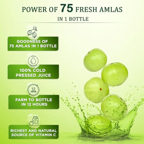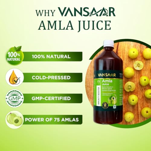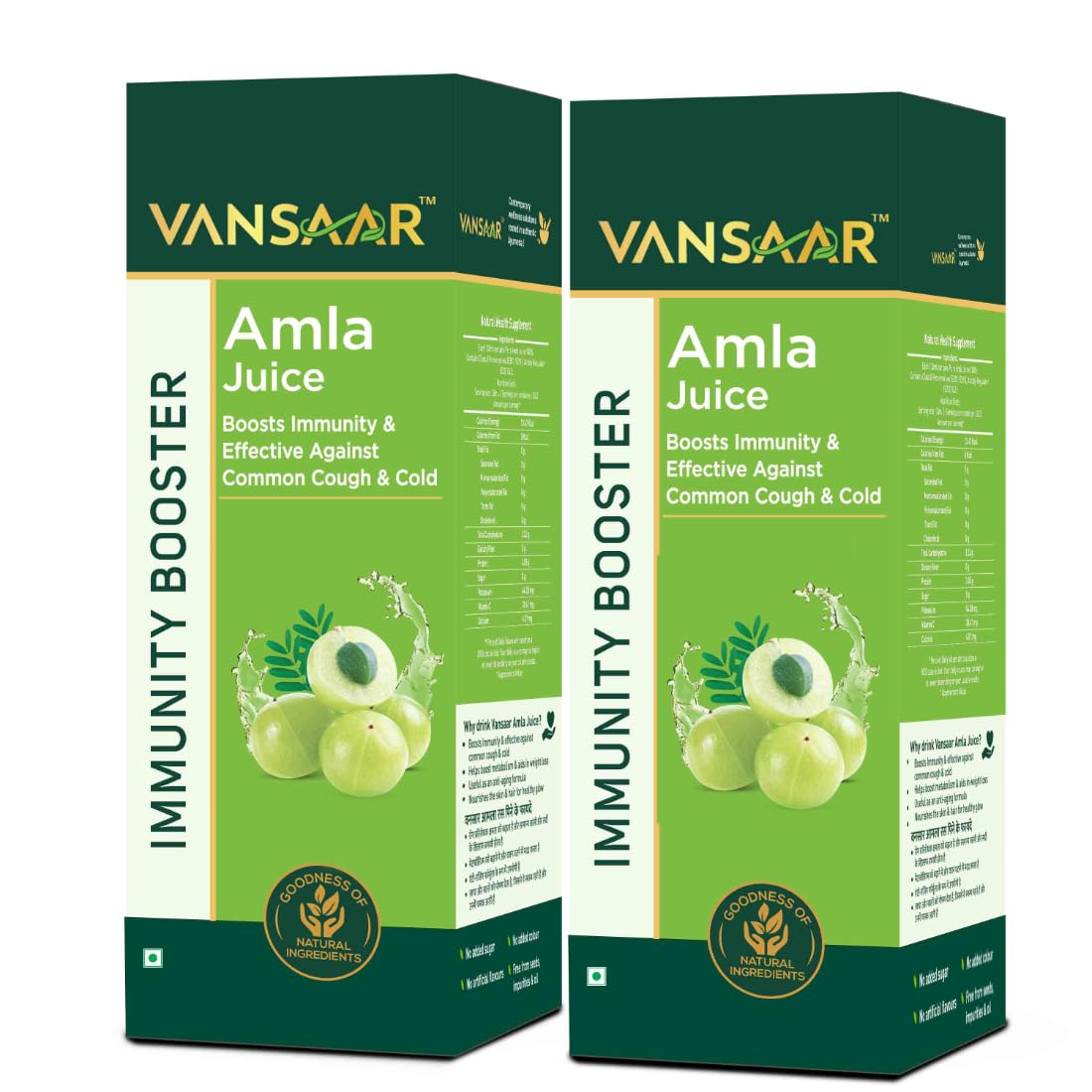 Vansaar Amla Juice provides health benefits ranging from immunity to fighting infections making it the best juice for your overall health. Being rich in Vitamin C A Iron & Calcium this amla juice is known to have excellent immunity boosting and antioxidant properties that help strengthen & boost immunity naturally. The 100% cold pressed Vansaar Amla Juice contains the goodness of 75 amlas in one bottle retaining essential vitamins and minerals providing you the same benefits as raw fresh & wild amlas. Maximize the immunity boosting benefits of amla juice by drinking on an empty stomach daily!