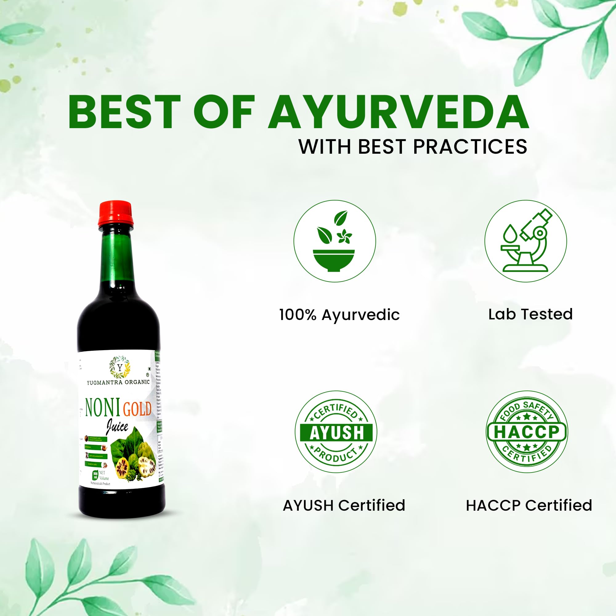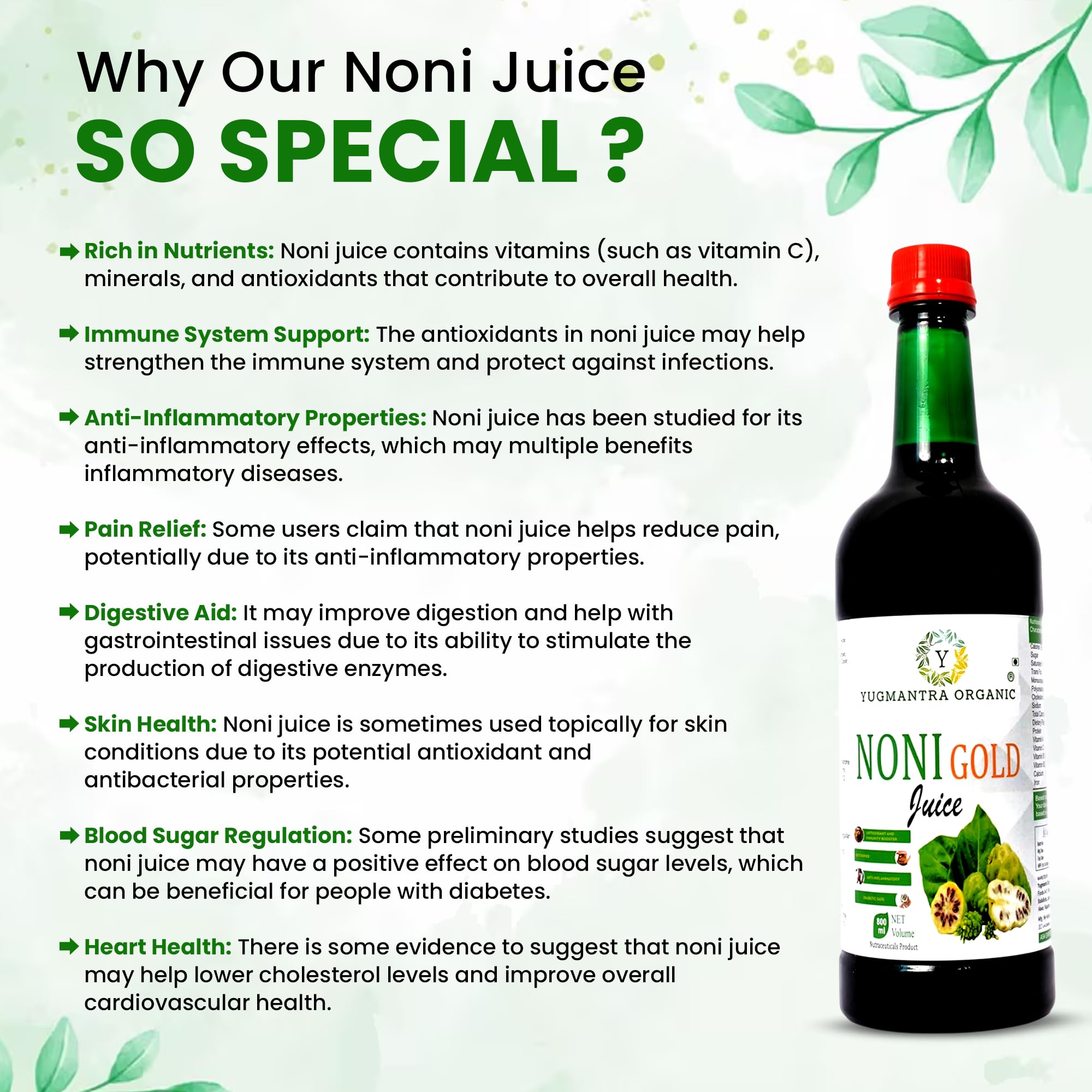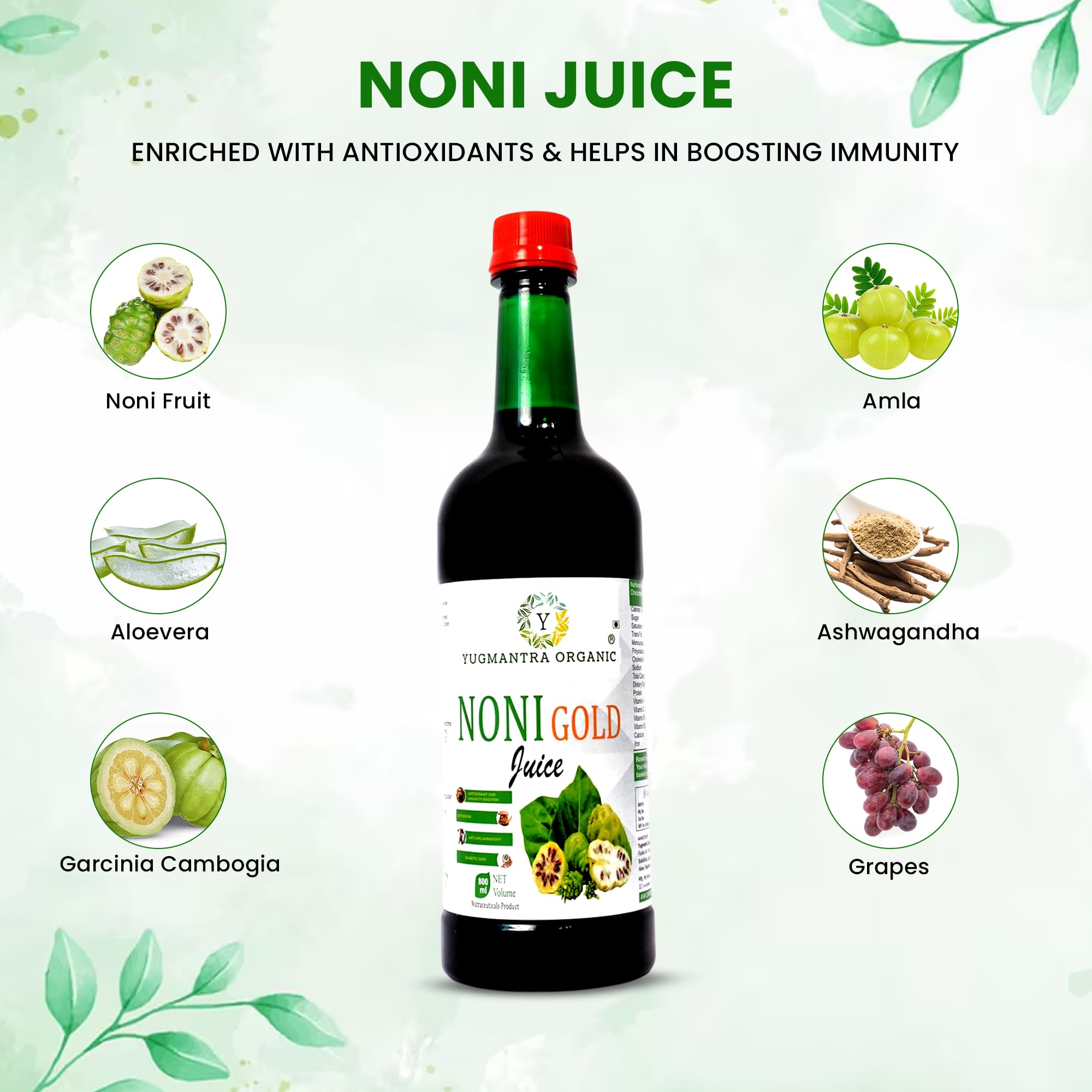 Yugmantra Orgnanic Raw Noni Juice Gold With Rich Antioxidant|Supports Joint Health|strengthen your immunity|No Additive 100% Pure Immunity Booster for Skin & Hair- 800 Ml