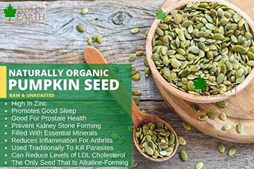 Bliss of Earth Naturally Organic Pumpkin Seeds are dehulled and are one of the healthiest superfood. They are loaded with nutrients that can provide a substantial amount of healthy fats magnesium and zinc. Incorporating these seeds in your diet improves heart health & prostate health.