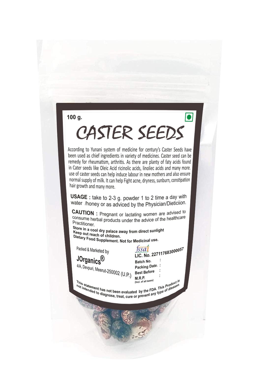 JOrganics Castor seeds Ricinus Communis Seeds (Arandi Ke Beej) | 100g