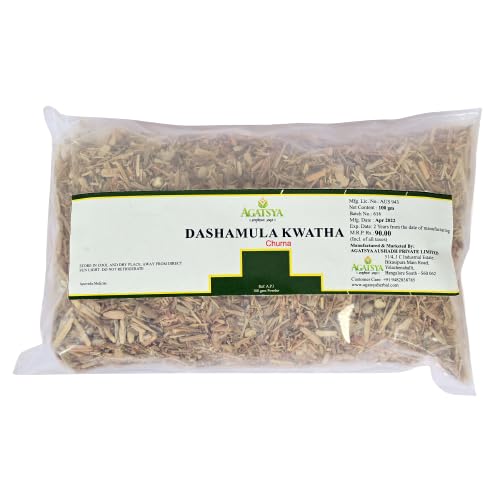 Dashamoola literally means "ten roots". This exemplary combination has been widely used in Ayurveda since ages due to its amazing health benefits.A potent anti-inflammatory, analgesic,anti oxidant and rejuvinator.This formulation treats Vata and Kapha dosha imbalances, used in the management of digestive, respiratory and inflammatory diseases. Dashamoola kwatha churna is extensively used in 'Basthi Chikitsa ' (~Enema),to eliminate toxins from the body.Agatsya Dashamoola Kwatha Ingredients:· Bilva· Agnimantha· Kashmari· Shyonaka· Patala· Sariva· Kantakari· Shalaparni· Prishniparni· Gokshura.