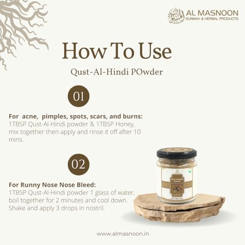 Discover the natural healing power of AL MASNOON Indian Costus Root Powder. This 100% pure and natural product derived from premium quality Qust al Hindi offers numerous health benefits including digestive support and respiratory relief. Rich in antioxidants it helps combat free radicals and supports overall well-being. Versatile in use it can be added to teas tinctures or used as a topical application. Packaged in a convenient resealable pouch it ensures freshness and potency.
